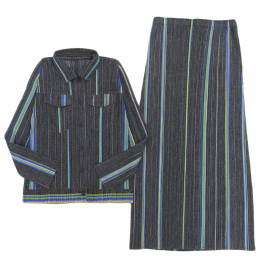 イッセイミヤケ プリーツプリーズのPP53-JD761/JG764 ブラック デニム風ストライプセットアップの買取実績です。