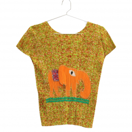 【買取価格】新宿でPLEATS PLEASEを買取。PP63-JK522 グリーン×オレンジ ゾウ プリーツ 半袖 カットソーを買取りました。