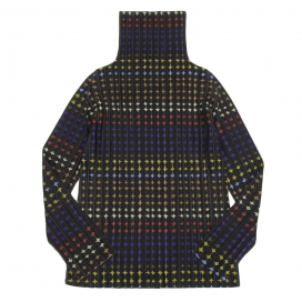 ブラック PP91-FK332 リブプリーツ ネオンサイン タートルネックカットソー