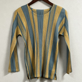 PP51-JK514 ブルー イエロー ストライプ プリーツカットソー