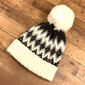 こちらのシャネルのニット帽ですが、2013年ごろのコレクションで展開していたお品物です。ノルディック柄が特徴的なデザインのアイテムで、非常に素敵です。遊び心のあるボンボンのついたニット帽は、秋冬の定番ではないでしょうか。カシミヤとウールの混毛で作られており、品質の高さがうかがえます。