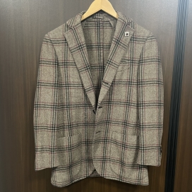 こんにちは、エコスタイル心斎橋店です。先日、ラルディーニのブラウンのチェック柄の段返り3Bテーラードジャケットを買取ましたので紹介します。