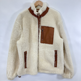 今回のお品物は、ふんわりとしたシアリング素材の質感が贅沢なムートンジャケットです。<b>フロントや襟元に施されたレザー切り替えがアクセントになっており、柔らかなホワイトベージュカラーとブラウンのコントラストが美しい一着です。シンプルでありながらも、アウター一枚でコーディネートが決まる主役級のアイテムです。未使用の大変綺麗な状態で、素材のコンディションも申し分なかったため、ご満足いただける査定金額をご提示できました。