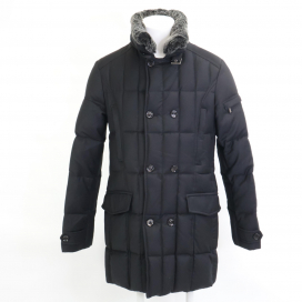 カシミヤ混の最高級ウールを使用した、上品で滑らかな質感が特徴のプレミアムダウンウェアです。セミロング丈のダブルブレスト仕様がダウン特有の着膨れを抑え、スーツスタイルにも合う美しいシルエットを実現しています。襟元には取り外し可能なラビットファーを配し、圧倒的な華やかさと防寒性を兼ね備えているのが特徴です。中綿には最高レベルのプルミュールダウンを贅沢に使用。大人の気品と機能美が凝縮された、まさに一生モノと呼ぶに相応しい1品です。