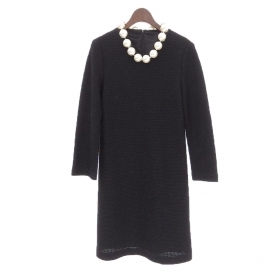 お買取したワンピースは、付属している大粒のパールボールネックレスが特徴的なお品物で、シンプルなデザインですが華やかさを備えています。また、全体をブラックカラーで統一されており、ロングスリーブに設計されておりますので、シックにスタイリッシュなコーディネートが可能です。