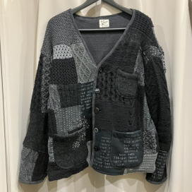 ブラック パッチワーク ニットカーディガン