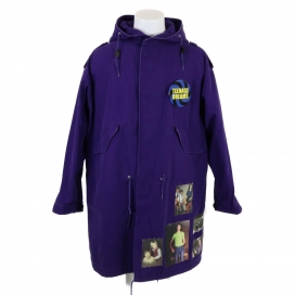 今回のお品物はミディアムレンジのデニムパーカー、211-710Mです。鮮やかなパープルのボディに「TEENAGE DREAMS」の缶バッチ、ノスタルジックなフォトパッチが複数施された、個性が際立つデザインが印象的です。ミリタリーテイストのモッズコートをベースにしつつ、軽やかなデニム地と大胆なカラー、そして写真プリントを組み合わせた唯一無二のデザインは、ファッション好きから非常に人気が高いです。