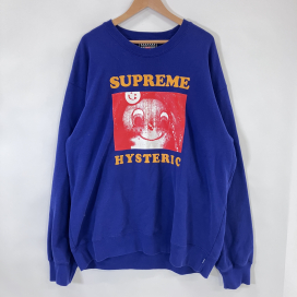 こんにちは、エコスタイル浜松入野店です。お客様からシュプリームのHYSTERIC GLAMOURコラボの21SSでパープルカラーのプリントクルーネックスウェットをお買取いたしましたので、ご紹介します。