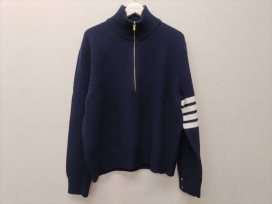 今回買取しましたお品物は、メリノウールを採用した4-BARファネルネックプルオーバーニット、MKA567A-Y1029-415です。アーム部分に特徴的な4バーがデザインされており、上質なメリノウールが良い感じですね。ハーフジップのニットはトレンドでもあるので、ちょっと肌寒い春先でも活用できそうです。