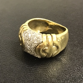 ご紹介するお品物は金を使用したリングです。ダイヤモンドが0.30カラットあしらわれており、手元が煌びやかな印象に見えるリングですね。購入して気に入って使っていたそうですが、最近は華奢なデザインのリングが好きになったということで、使う機会が無くなってしまったそうです。そこで金の買取価格が高騰している今、買取に出そうとお考えになったそうです。