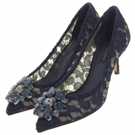 ドルチェ&ガッバーナ買取(Dolce&Gabbana) ネイビー CD0066AL1981 タオルミナレース ビジューパンプス 靴 新宿店 12,100円
