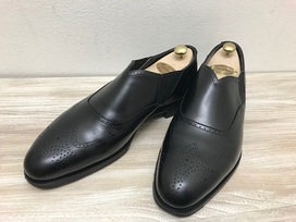 お持ち込みいただいたお品物はソールの減りもほとんどなく、使用感の少ない非常にきれいな状態でした。ビジネスシーンでもお使いいただけるお品物です。エドワードグリーンらしく、細みで美しいシルエットが際立っています。形はスリッポン型でウイングチップですのでカジュアルなスタイルにも合わせていただけます。