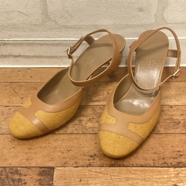 こんにちは、エコスタイル銀座本店です。エルメスのキャンバス×レザー素材を使った、Hデザイントゥのアンクルベルトパンプスを買取いたしましたので、ご紹介します。