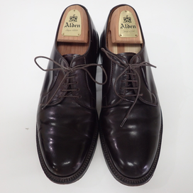ご紹介する革靴はオールデンの代表モデル「990」です。バリーラストという木型を使用したプレーントゥシューズです。素材はオールデン十八番のコードバンを使用。ホーウィン社製のコードバンはアメリカのみならず世界的にも非常に高い評価を獲得しているタンナーのコードバンを使用しています。状態は使用されているものの目立った傷汚れはない状態で買取をさせていただきました。