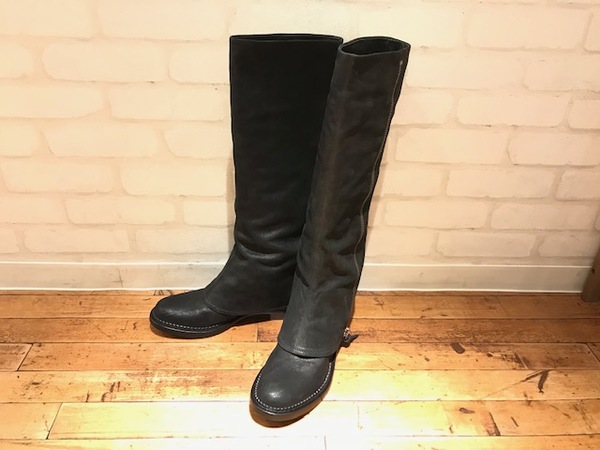 今回ご紹介させていただきますお品物はレザーサイドジップロングブーツです。こちらのお品物はシンプルでいろいろな場面で使用できるということで、たくさんの方達から愛用されております。状態も汚れなどなくきれいなお品物でしたのでこちらの買取金額を提示させていただきました。