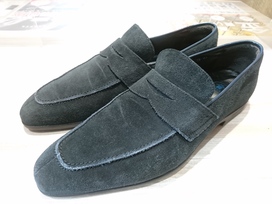 今回買取させていただきました三陽山長の靴は、新弥 スエードレザー Uチップ コインローファーです。ややロングノーズ気味でスマートな印象のコインローファーですね。カラーはネイビー色を使っており、ブラックやブラウンとはまた違った魅力がありますね。