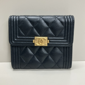 今回ご紹介するのは、数年前に購入をしたシャネルのコンパクトウォレットです。人気が高いキャビアスキンを使用したアイテムで、ブラックカラーに金具にはココマークがデザインされており、ブランドカラーを象徴するデザインです。また状態は使用回数が少なかったこともあり、美品のAランクと判断いたしまして、目いっぱいの金額をご提示いたしました。