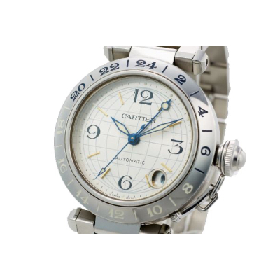 また、文字盤もカルティエのロゴをギョーシェ彫加工したデザインとなっており、平面的なプリントとは違う、浮き出たような立体感を感じさせます。