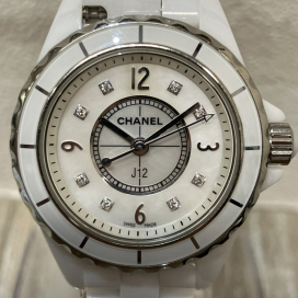 こんにちは、エコスタイル銀座本店です。先日お客様より8PダイヤモンドをあしらったJ12、マザーオブパールダイヤルのクオーツ時計、H2570をお買取いたしましたので、ご紹介します。