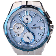 お持ちくださりましたお品物は、ブルーの文字盤が魅力的なオシアナスでした。ベルトの素材にはチタンを使用しており、耐久性がありながら重さを軽減している点も魅力的です。カシオが展開するアイテムの中でも人気が高く、多くの方から愛されているのがオシアナスです。