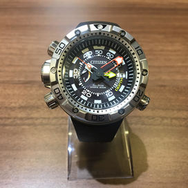 シチズンのプロマスターアクアランドを買取させていただきました。当店がセイコーやシチズンといった国産時計の買取を強化している事をホームページを見てくださっていました。今まで買取店でブライトリングを売却したこともあるそうで、相場に詳しい方でしたが、ご満足していただけて嬉しく思います。BN2021-03Eは、「ランド」「マリン」「スカイ」と展開されているプロマスターのマリンシリーズです。ブライトリングの時はスーパーオーシャンをお持ちだったそうなので、ダイバーズウォッチがお好きなお客様でした。