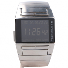 ユンハンスとは、1861年にドイツで時計部品工場として設立しました。1930年代から自社製ムーブメントの開発を強化し、1950年代にはドイツ空軍に提供したJ88ムーブメント搭載のクロノグラフや、世界第3位の生産量を誇るクロノメーター・メーカーとしてその名を轟かせました。1990年に世界初の電波腕時計MEGA1を発表したことで有名です。