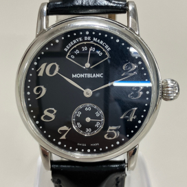 こんにちは、エコスタイル銀座本店です。モンブランのステンレス素材のマイスターシュティックパワーリザーブ手巻き腕時計7017をお買取いたしましたので、ご紹介します。