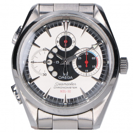 オメガの2513.30、シーマスターアクアテラクロノグラフは、スポーツウォッチとしての堅牢性とドレスウォッチの上品さを兼ね備えた、非常に完成度の高い一本です。シルバーのダイアルは細やかなサンレイ仕上げが施され、光の角度によって上質な輝きを放ちます。3つのインダイアルを配したクロノグラフレイアウトは視認性に優れ、精密機器としての信頼性を物語ります。ケース径は扱いやすいサイズで、スーツにもカジュアルにも自然に馴染む汎用性の高さが魅力です。オメガならではの高精度ムーブメントを搭載し、日常使いに十分な防水性能も確保。アクアテラシリーズらしい海を想起させる爽やかなデザインと、クロノグラフ機能が融合したこのモデルは、実用性と洗練を求める大人にふさわしい1本です。