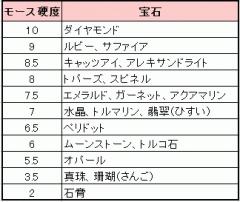 モース硬度とは、「傷のつきにくさを10段階で表したもの」です。