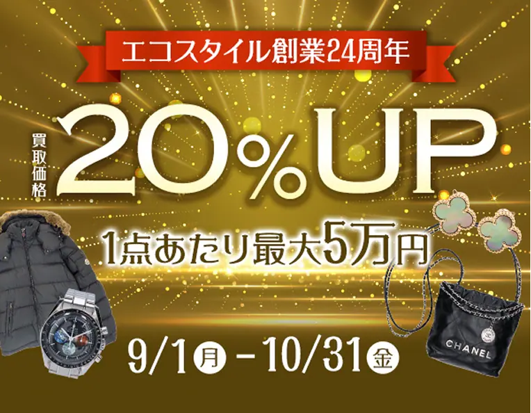 ※ 1点の買取金額は20%UPとし金額アップ上限は5万円となります